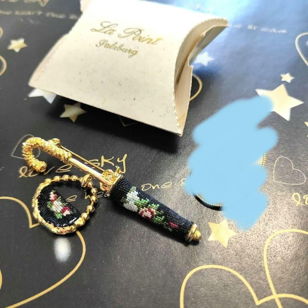 - ゴブラン シェニール織り アンブレラブローチ ブーケ柄 ブラック×ゴールド