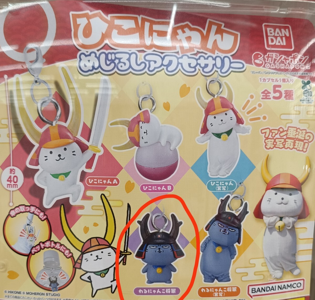 - ガシャポン★ ひこにゃん めじるしアクセサリー【わるにゃんこ将軍】バンダイ