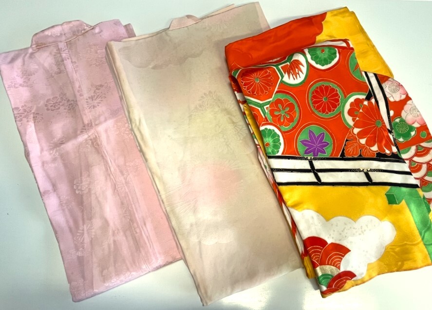 > 花とら●リサイクル着物 女児 祝い着 長襦袢付き 女児 一つ身 ポリエステル 絹 リメイク 素材 細工用 250808