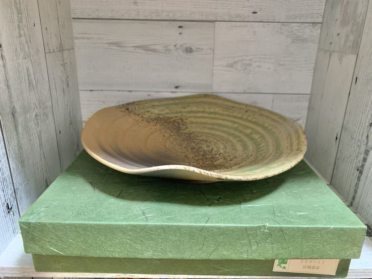 - 阿久良 灰釉盛皿 大皿 盛皿 和食器 陶器 灰釉 焼き物 備前焼 信楽焼