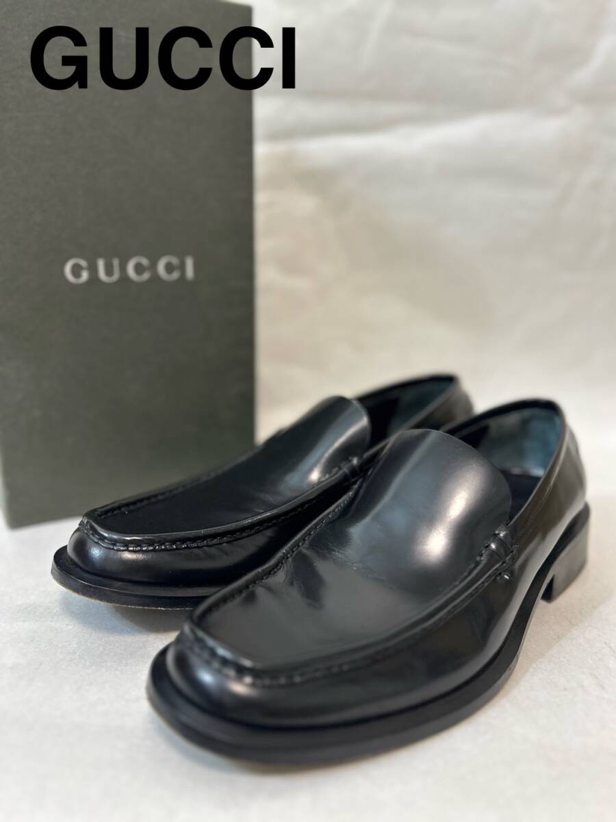 - II0132★8 高級 箱付き GUCCI グッチ レザー メンズ 本革 スリッポン ローファー 革靴 シューズ ビジネスシューズ 黒