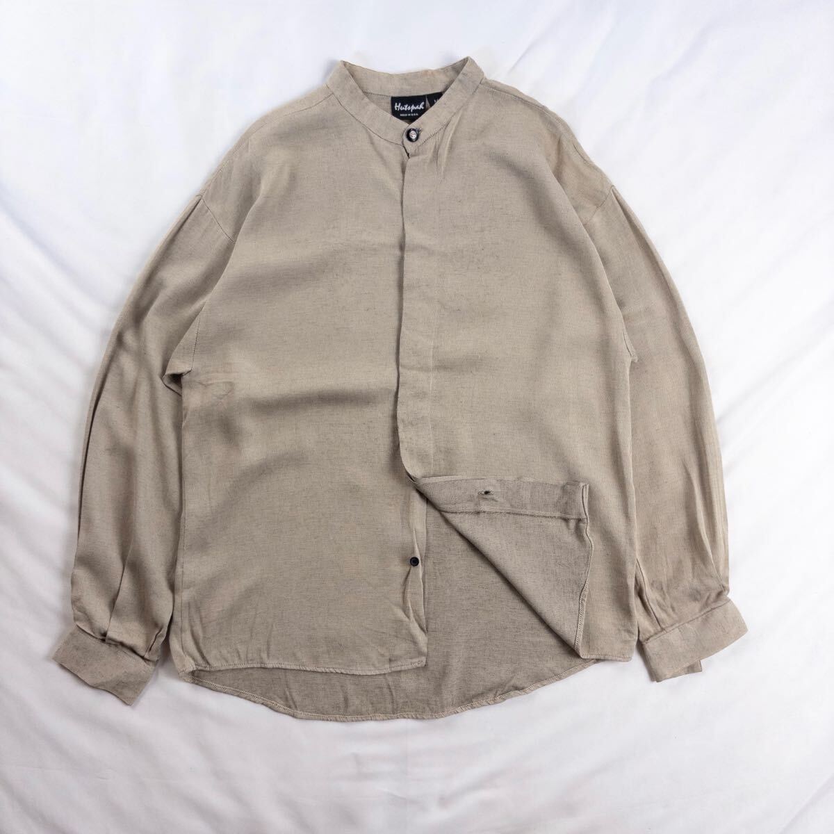 - US Vintage アメリカ製 80-90s Hutspah レーヨン バンドカラー スタンドカラー 比翼 フライフロント とろみ ドレープ くすみカラー シャツ