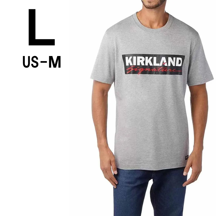 > 新品 L ★ コストコ カークランドシグネチャー ロゴ 半袖 Tシャツ グレー US-M スーピマコットン 綿 メンズ レディース 男女兼用 大きめ