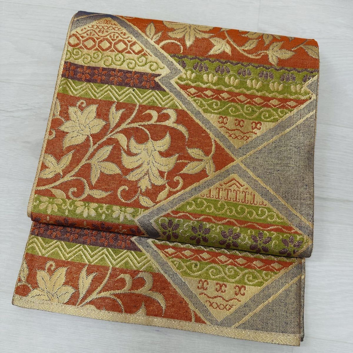 - 袋帯 唐花に花唐草 華やかな織出し 正絹 着物 W-3811