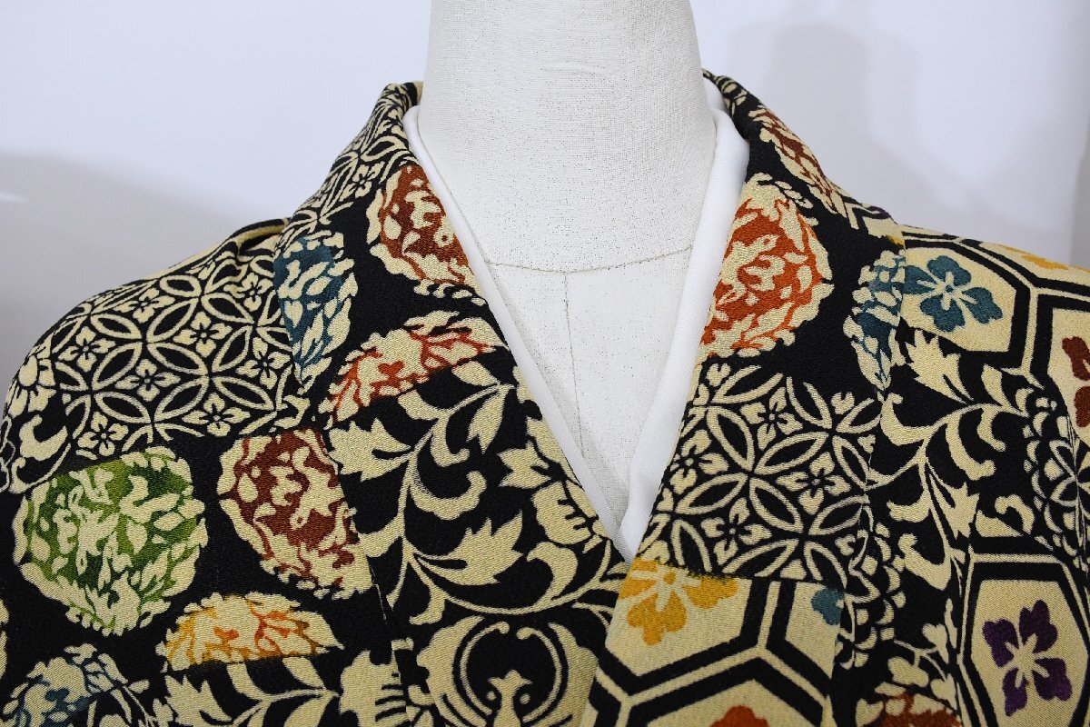 - 小紋 着物 袷 和更紗 古典柄 絵取り 正絹 縮緬正絹 鬼ちりめん 身丈159.5cm 裄丈65cm ★ kb-6937 桜庭呉服店