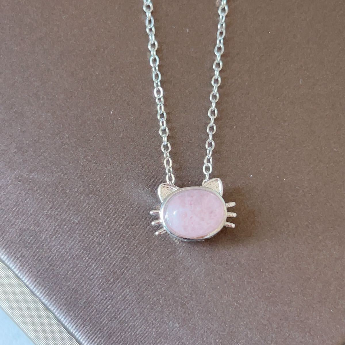 - ◇ストロベリークォーツ(苺水晶) ◇ねこ形◇ネックレス◇ペンダント◇パワーストーン◇天然石◇巾着袋付き◇プレゼントにも039P8269