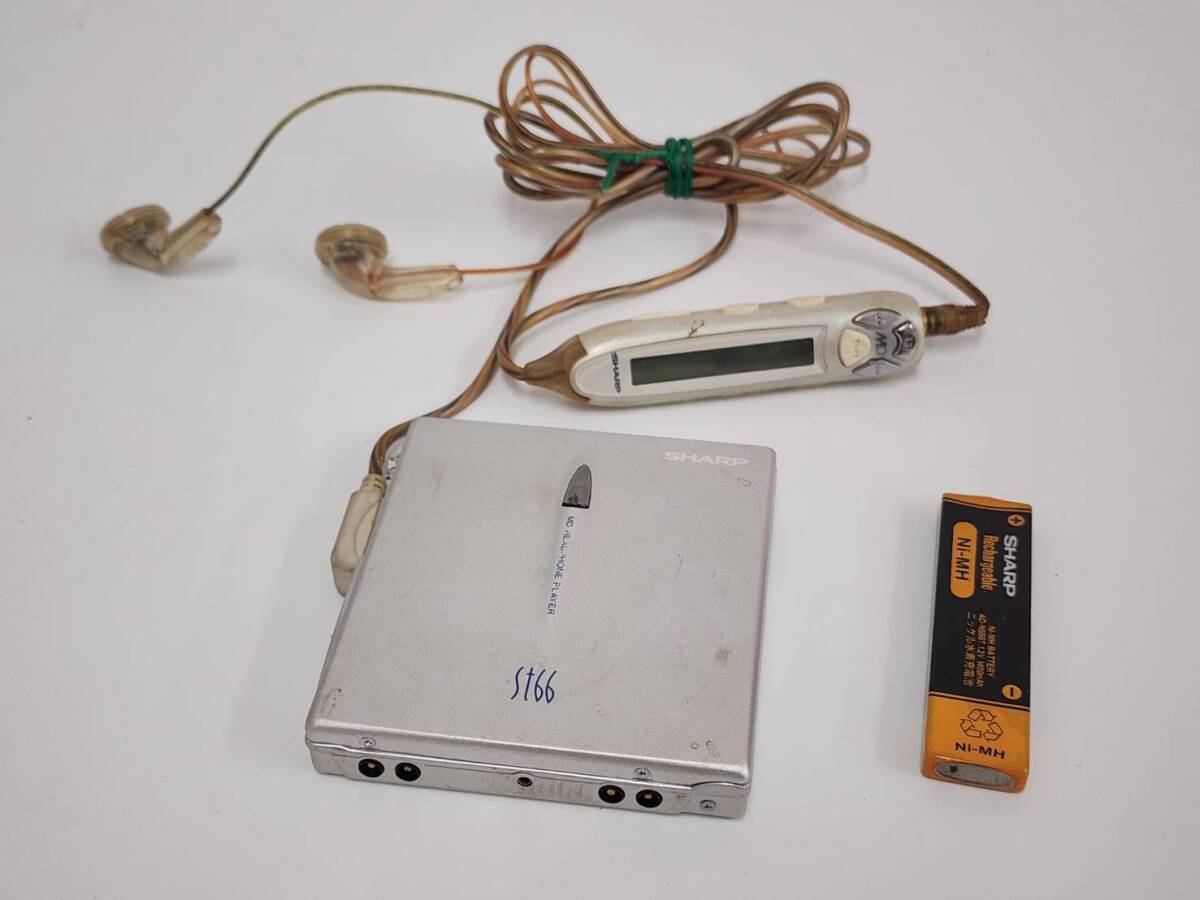 - ★ R70826 SHARP シャープ ポータブルMDプレーヤー MD-ST66-S リモコン・イヤホン付き 現状渡し ★