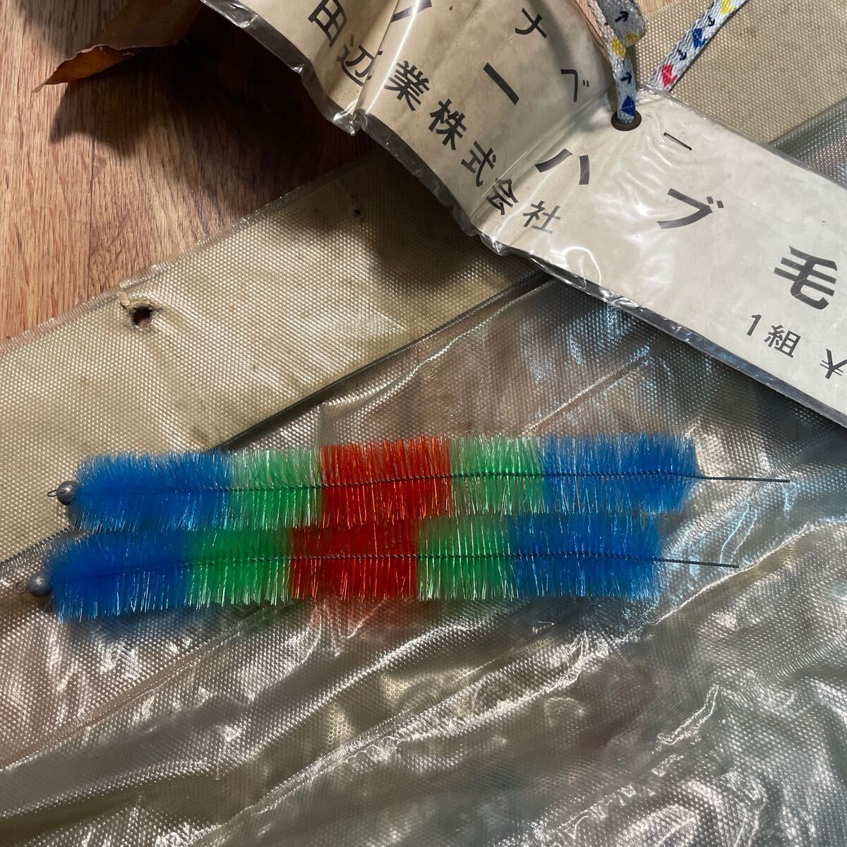 > レア当時物カラーハブ毛2本セットレトロ自転車スポーク旧車古いビンテージスーパーカーハブブラシデッドストック デコチャリ昭和レトロ希少