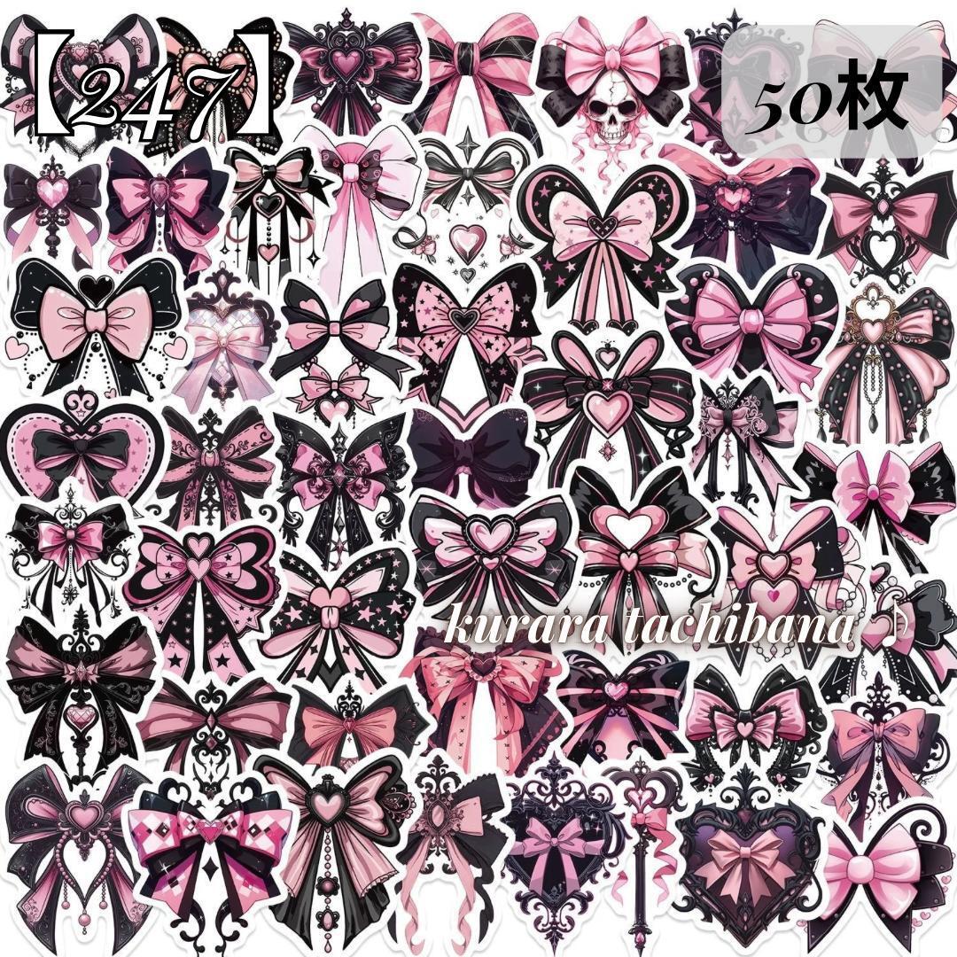 - 【247】フレークシール ゴスロリ リボン ステッカー コラージュ素材 装飾 ピンク 黒 ジャンクジャーナル アルバム デコレーション 50枚