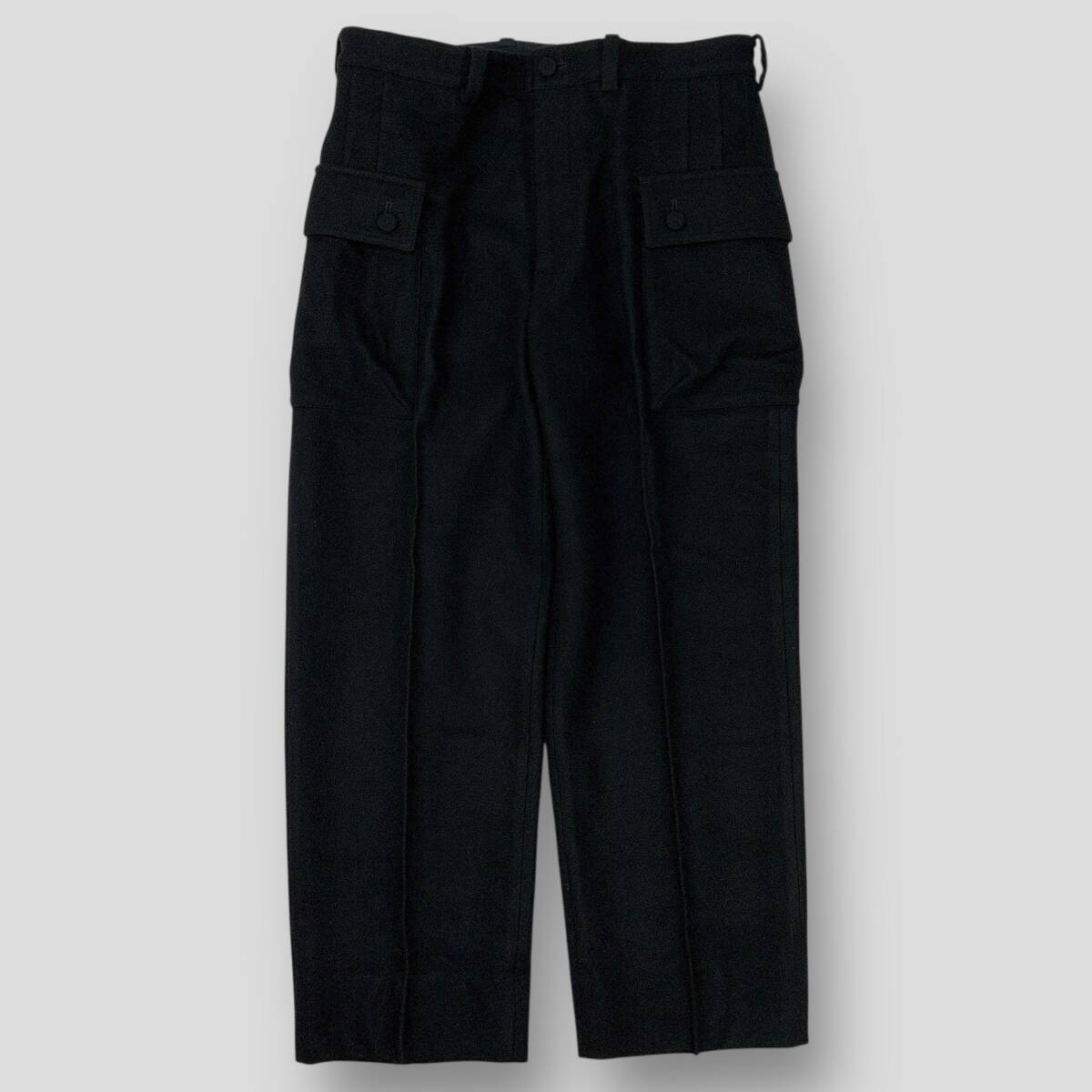 > 美品 semoh セモー 23AW Melton Cargo Trouser メルトン カーゴトラウザー 24-8-01 3 ブラック ウール カーゴパンツ スラックス SSM5753