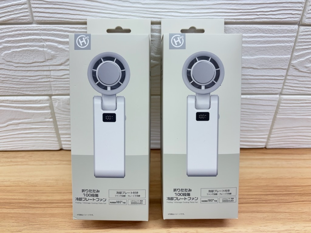 - A428 新品 2個セット 強力な冷却プレート搭載 風量100段階 折りたたみ冷却プレートファン ハンディファン 卓上 首掛け 3way仕様 ホワイト