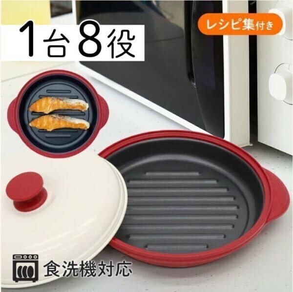 - 電子レンジ 専用 調理器 レンジ 調理 魚焼き プレート レンジで 焼き魚 時短 料理 食器 焼き目 魚 器具 グッズ 蒸し器 スチーマー パスタ