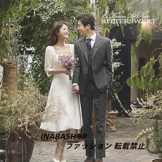 - ショート ウェディングドレス パーティードレス ウエディングドレス Aライン レディースドレス 前撮り 後撮り 披露宴 結婚式海外挙式ドレス