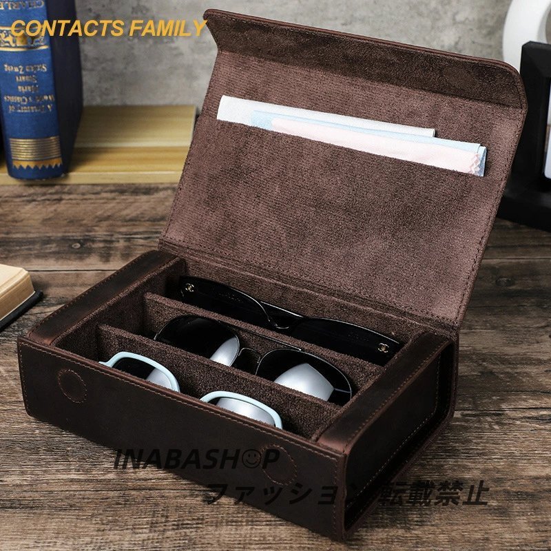 - メガネケース 3本用眼鏡収納 レディース 本革ケース メガネ収納ケース 軽量 コンパクト スリム ソフト PCメガネ サングラス 老眼鏡ケース