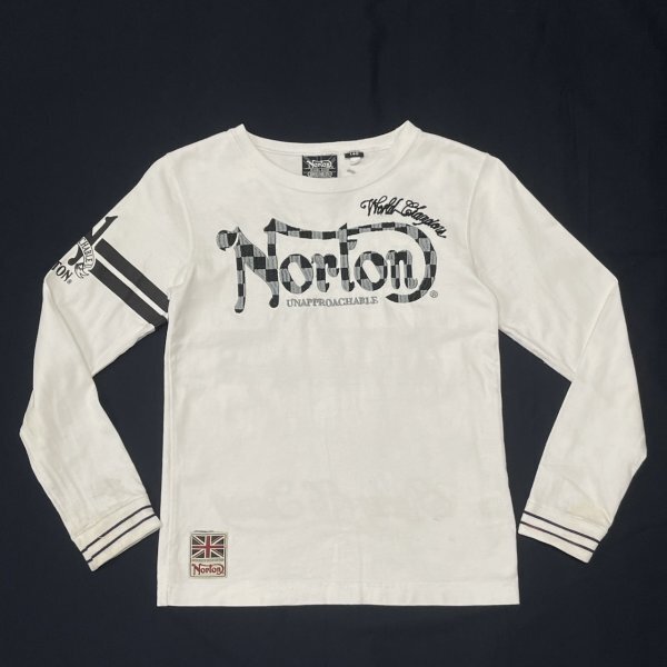 - NORTON ロンT キッズ140 刺繍 ハイデザイン フルデコ ノートン 長袖Tシャツ ビッグロゴ デカロゴ kids しっかりした素材 石瀬7062