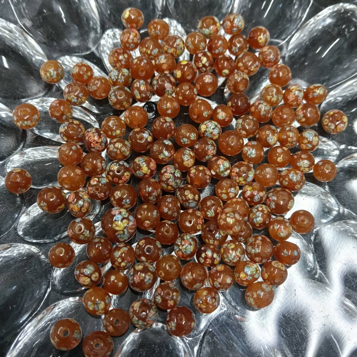 > ☆未使用 大量 チェコ ガラスビーズ 35g 8m ラウンド ブラウン 茶色 大粒 ヴィンテージ パーツ アクセサリー ネックレス B-68