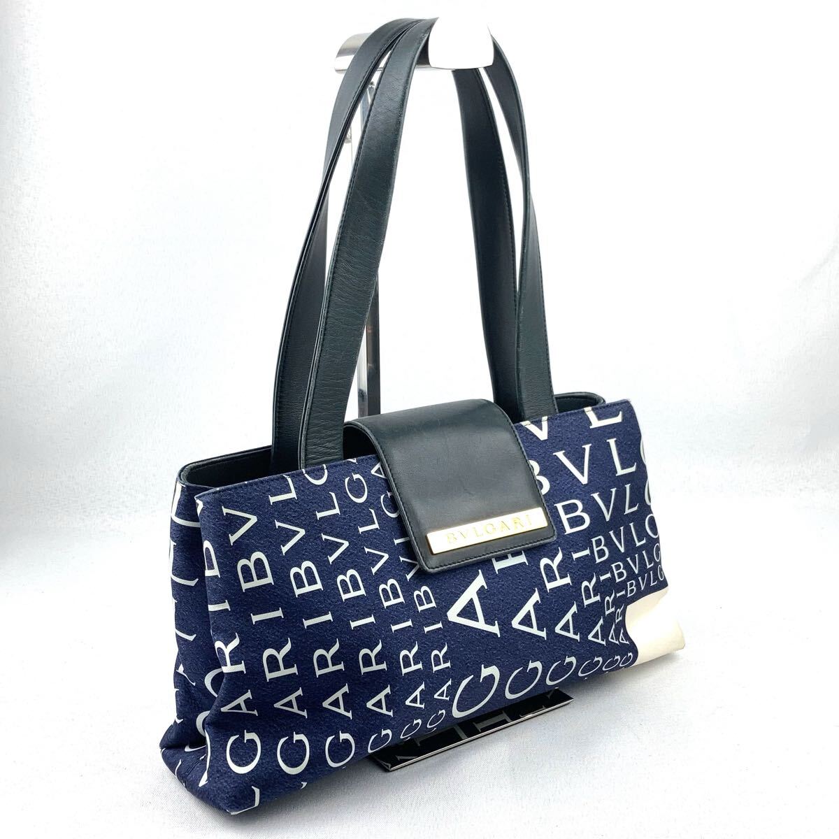 - BVLGARI ハンドバッグ ロゴマニア トートバッグ ネイビー ブルガリ キャンバス