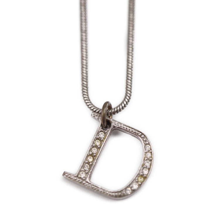 - Christian Dior クリスチャンディオール ネックレス メタル ラインストーン シルバー Dロゴ【本物保証】