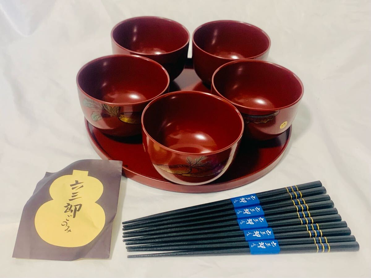 - 未使用 六三郎ごのみ 盆 椀 箸 5客 道場六三郎 漆器 野菜 漆塗 和食器 うるし塗装 伝統工芸