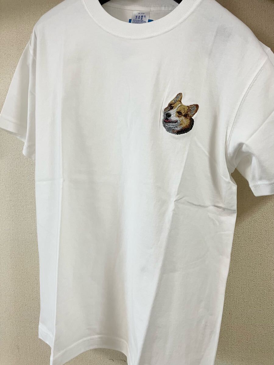 - Tシャツ コーギー犬 ワンポイント刺繍 男女兼用 XLサイズ gray us 100% cotton