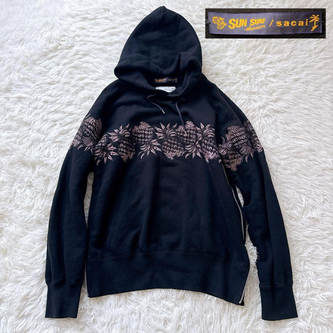 - 希少コラボ sacai SUN SURF サカイ サンサーフ コラボパーカー サイドジップ 花柄刺繍 スウェット ジップアップ コットン ブラック 黒