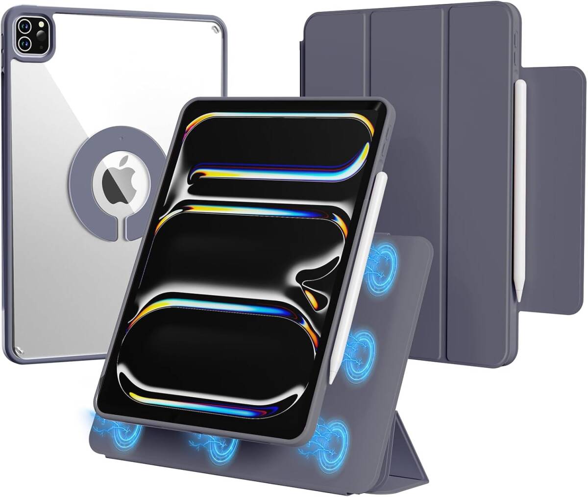- Aoub iPad Pro 11 インチ ケース 第5世代 2024 専用 マグネット 磁気吸着式 透明カバー 縦置横置きスタンド Pencil Pro/USB-(ブルーグレー)