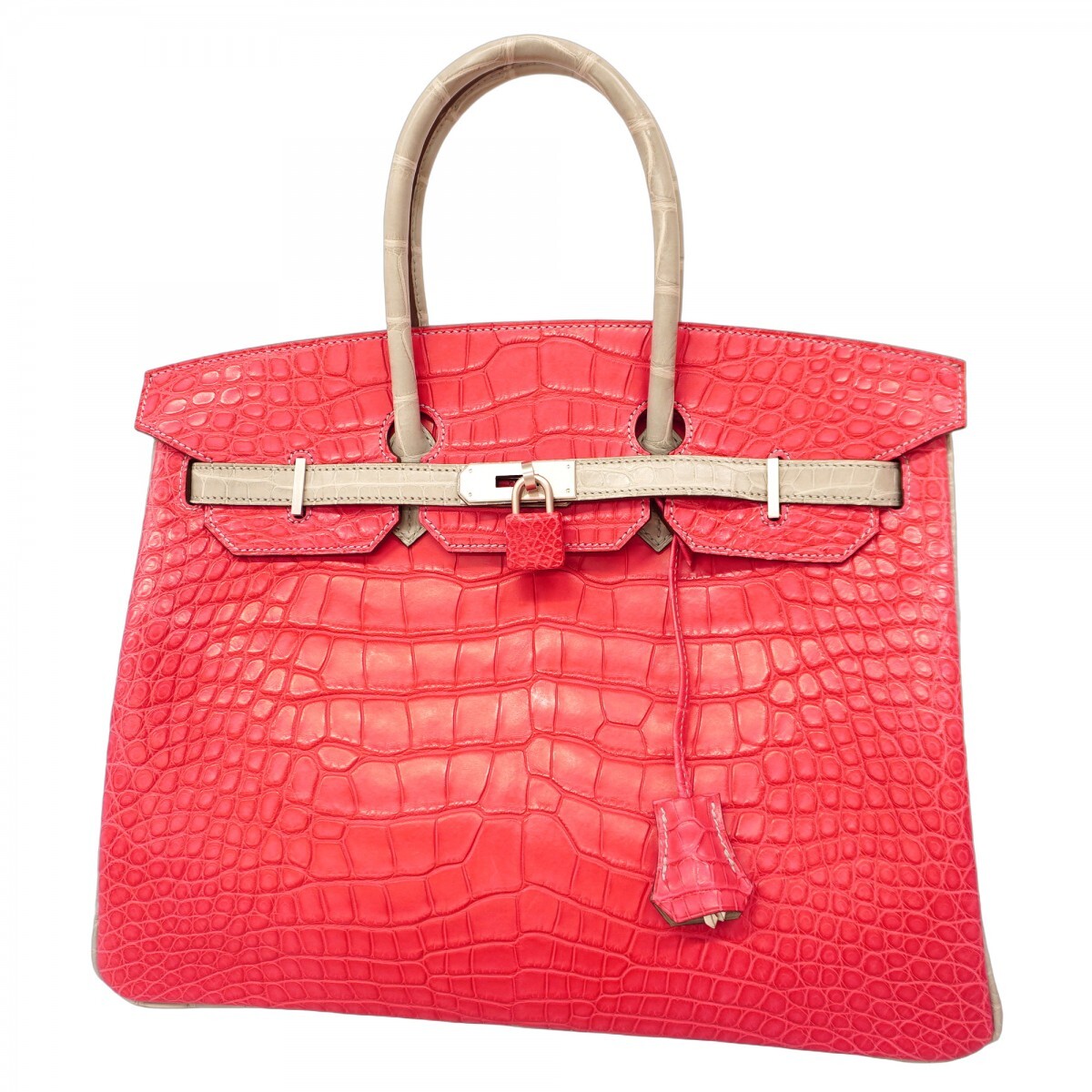 - ★SALE【5hc1918-e-g】エルメス ハンドバッグ バーキン35 アリゲーターマット ローズエクストリーム グリシアン シルバー金具 Y刻印 SPO
