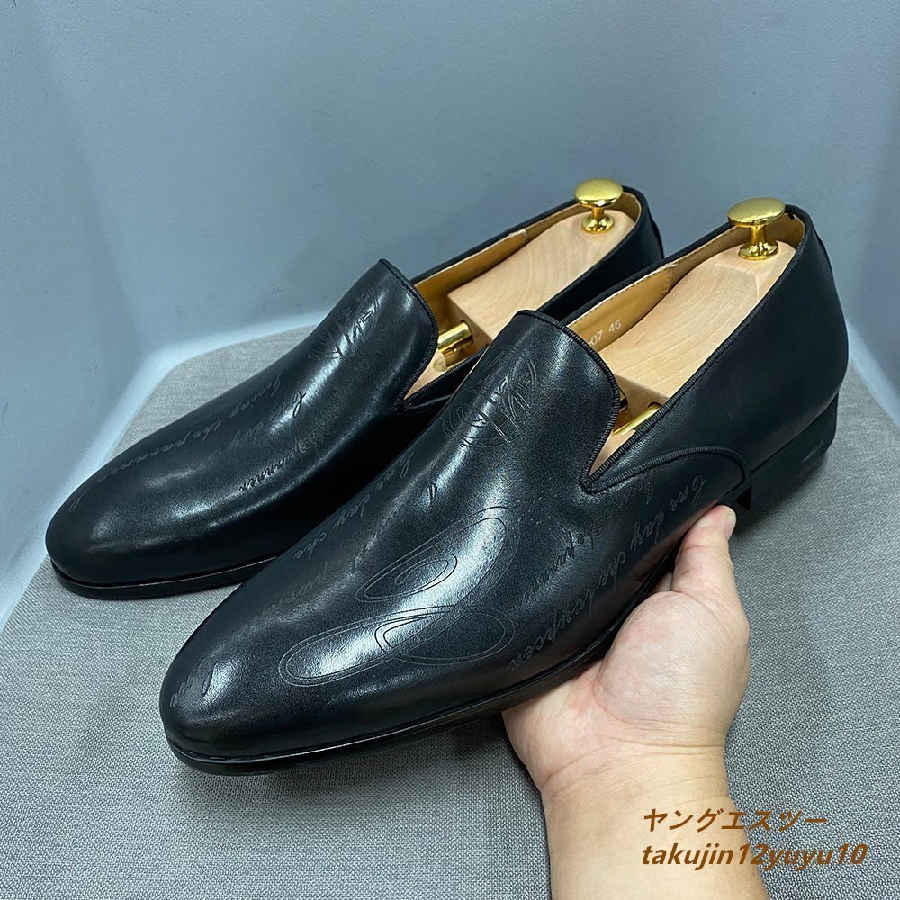 - 超希少★最高級 ビジネスシューズ 本革 レザーシューズ ローファー 職人手塗仕上げ 彫り 紳士靴 フォーマル 牛革 革靴 ブラック 25.0cm