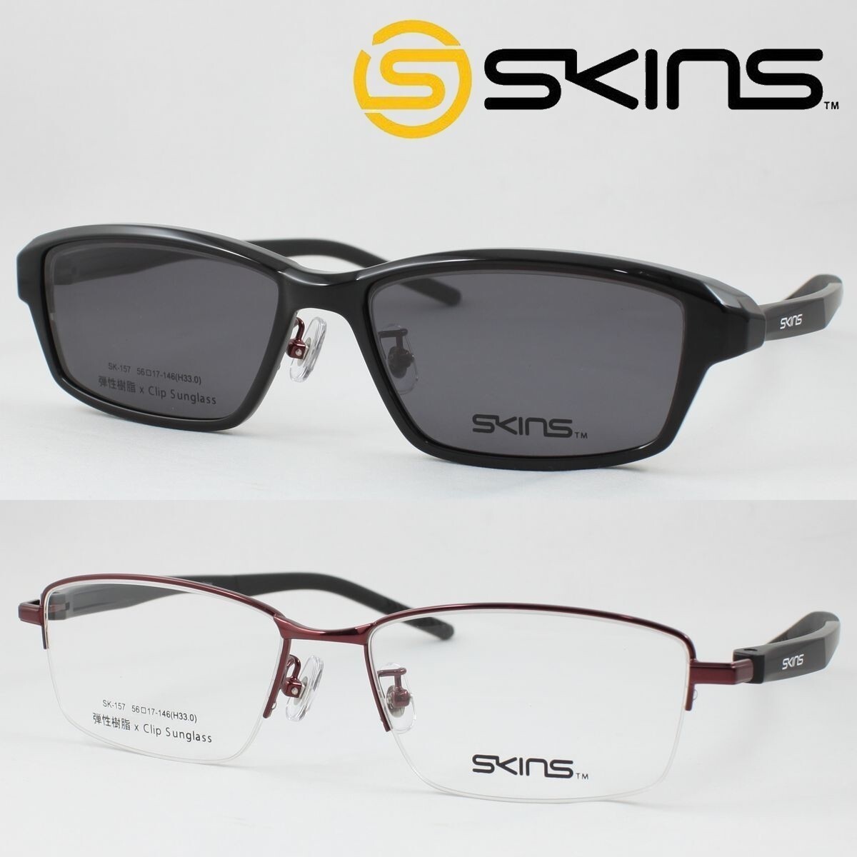 > SKINS スキンズ メガネフレーム SK-157-4 脱着式 マグネットクリップ偏光サングラス 度付き対応 近視 老眼鏡 遠近両用 スポーツ 軽量