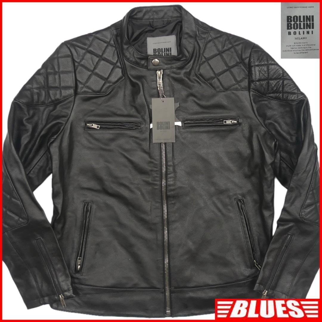 - 即決★BOLINI★未使用 メンズL レザーライダースジャケット ボリーニ 黒 キルティング 本革 シングル 本皮 パンクロック ツーリング