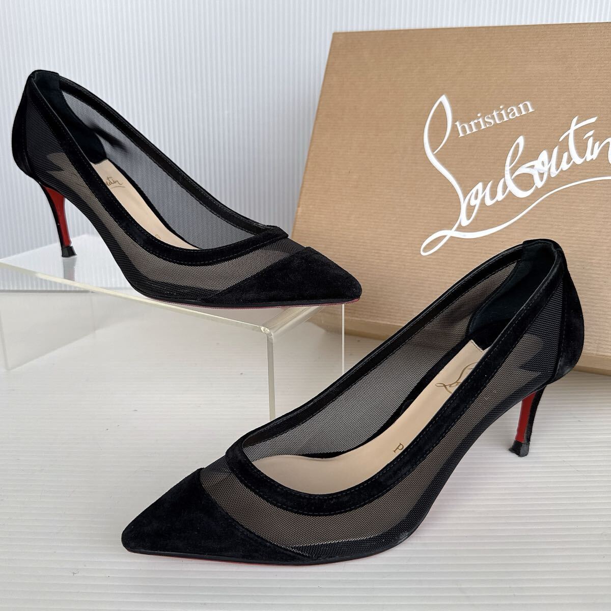 > Christian Louboutin クリスチャンルブタン サンダル ハイヒール パンプス ポインテッドトゥ 黒 35 メッシュ 靴 レーディス シューズ