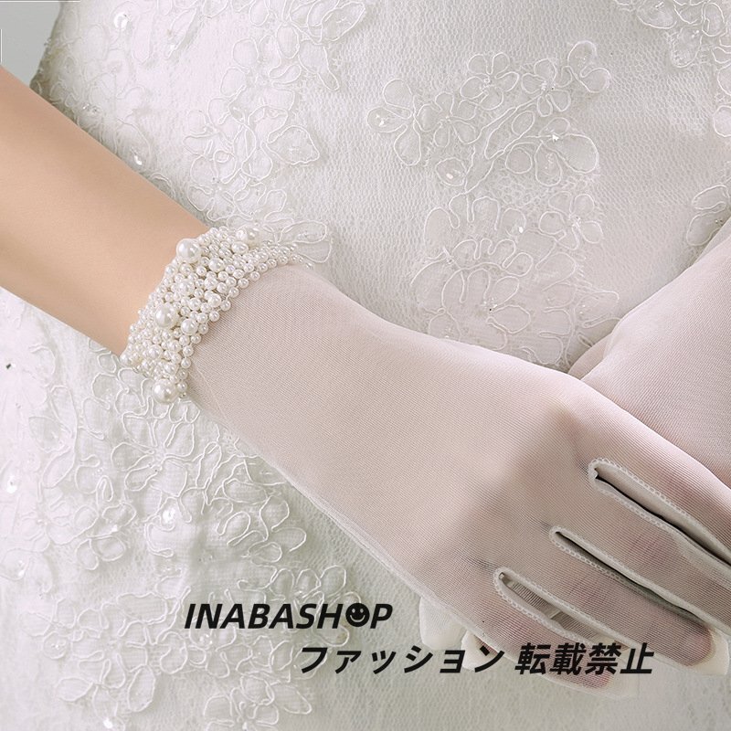 - グローブ 結婚式 【ショートグローブ】ウェディンググローブ ウエディンググローブ ウェディング小物 レース パール飾り ブライダル小物
