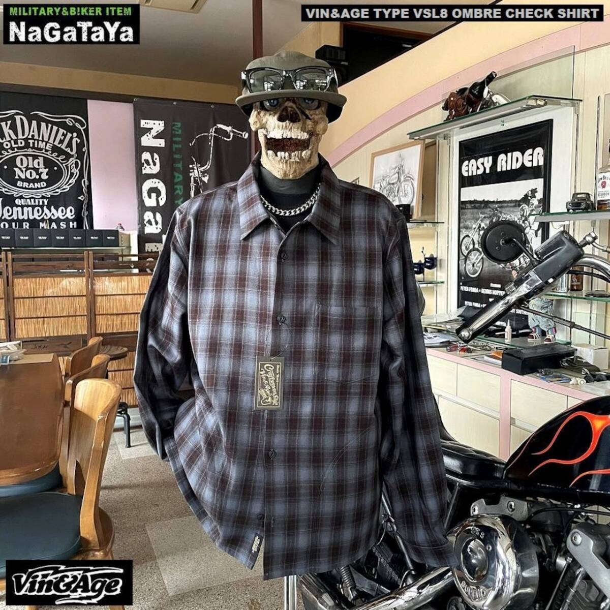 - Vin&Age ヴィンアンドエイジ TYPE VSL8 セミワイド オンブレ チェックシャツ ブルー Lサイズ サイドポケット付