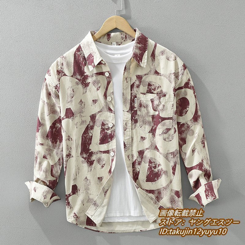 - 超美品★メンズシャツ 長袖シャツ 春新品 アウター 総柄 ワークシャツ 超希少 ヴィンテージ 英文字 心地良し 上着 カジュアル レッド L