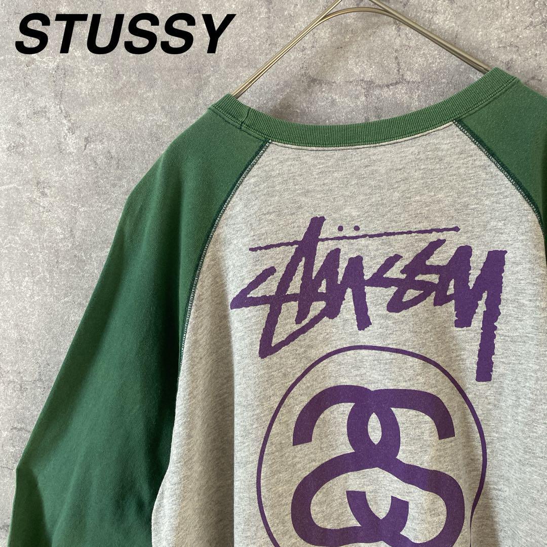 - STUSSY ラグランtシャツ 七分袖 バックプリント Lメンズ