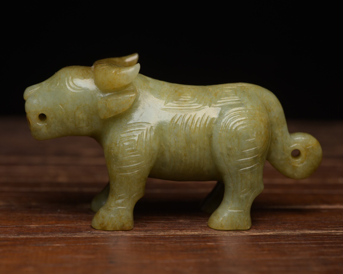 - ▽鴻▽ 和田玉製 細密彫 牛尊 置物 賞物 古賞物 古董品 時代物 稀少珍品 中国古玩 中国古美術