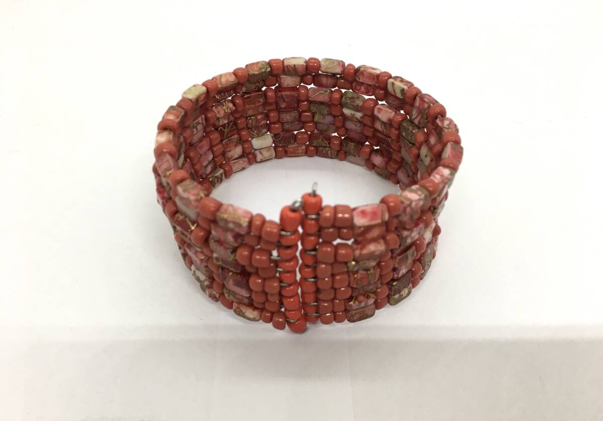 - ブレスレット バングル ビーズ アクセサリー 赤×ゴールド