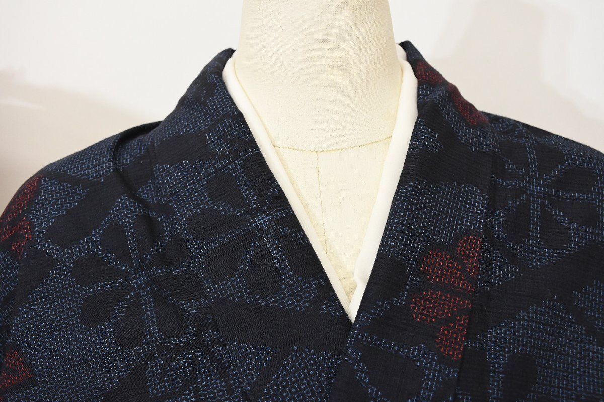 - 紬 つむぎ 菱華紋 菊 正絹 身丈159cm 裄丈159cm ★着物 pb-3392 桜庭呉服店