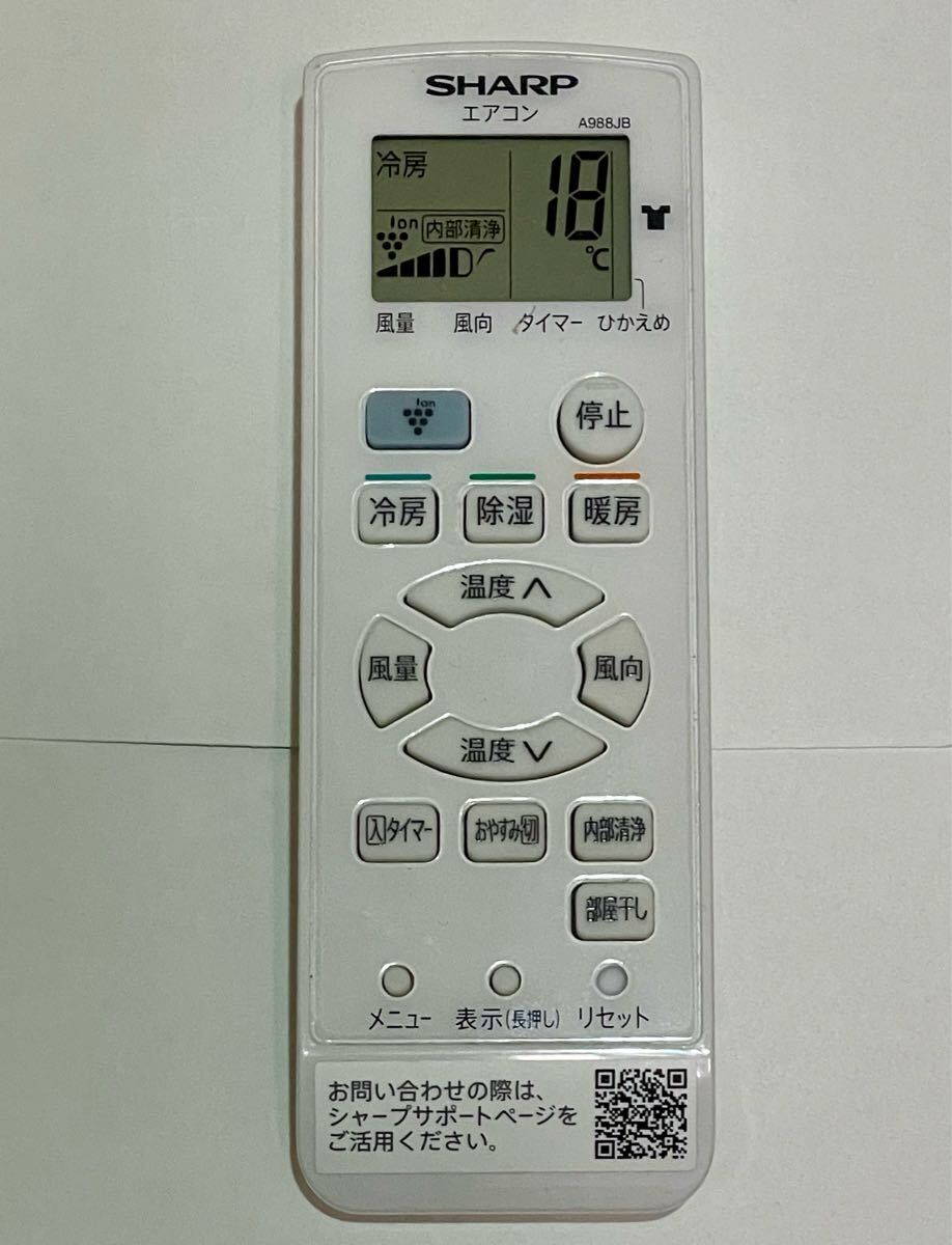- 送料無料 美品中古 エアコン用リモコン シャープ A988JB