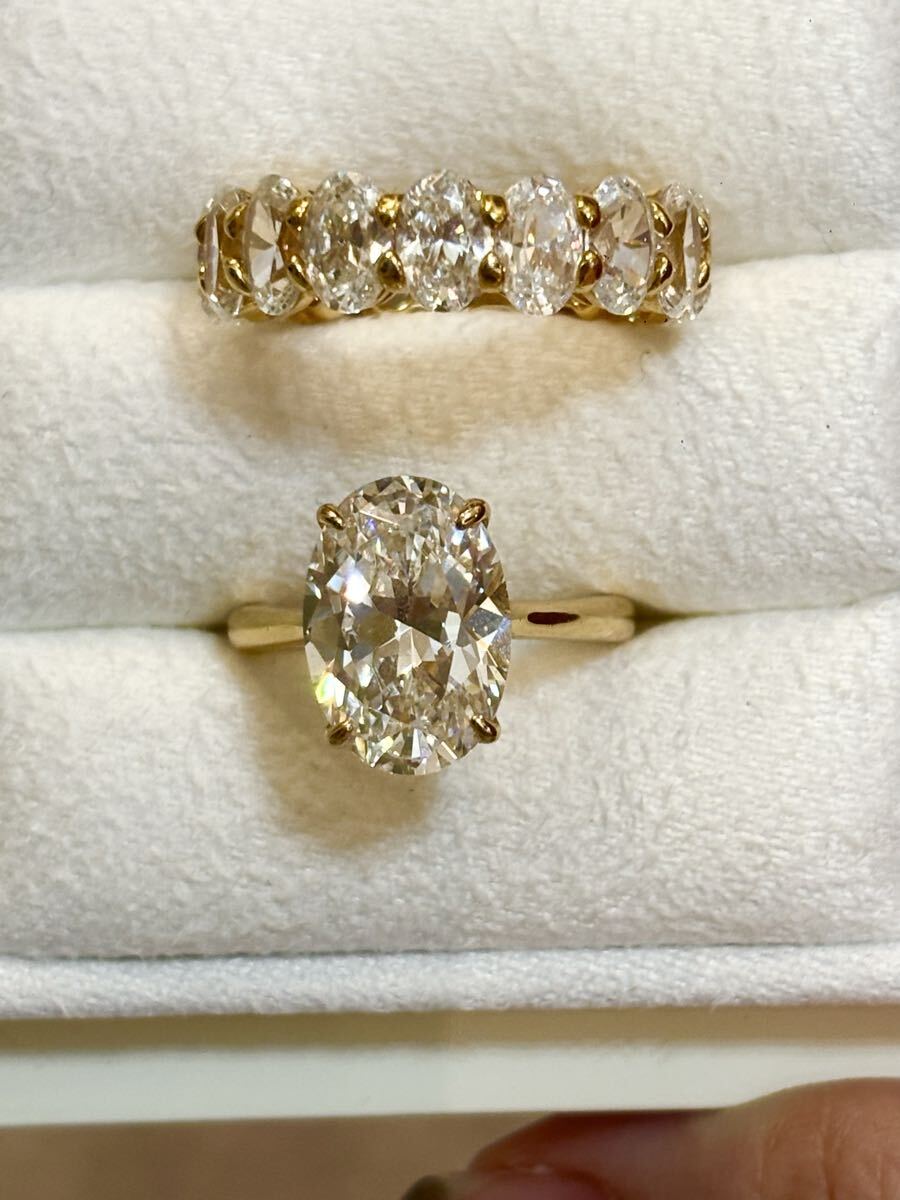 - 最高級ジルコニアゴールドオーバルカットダイヤモンドリングセット 指輪