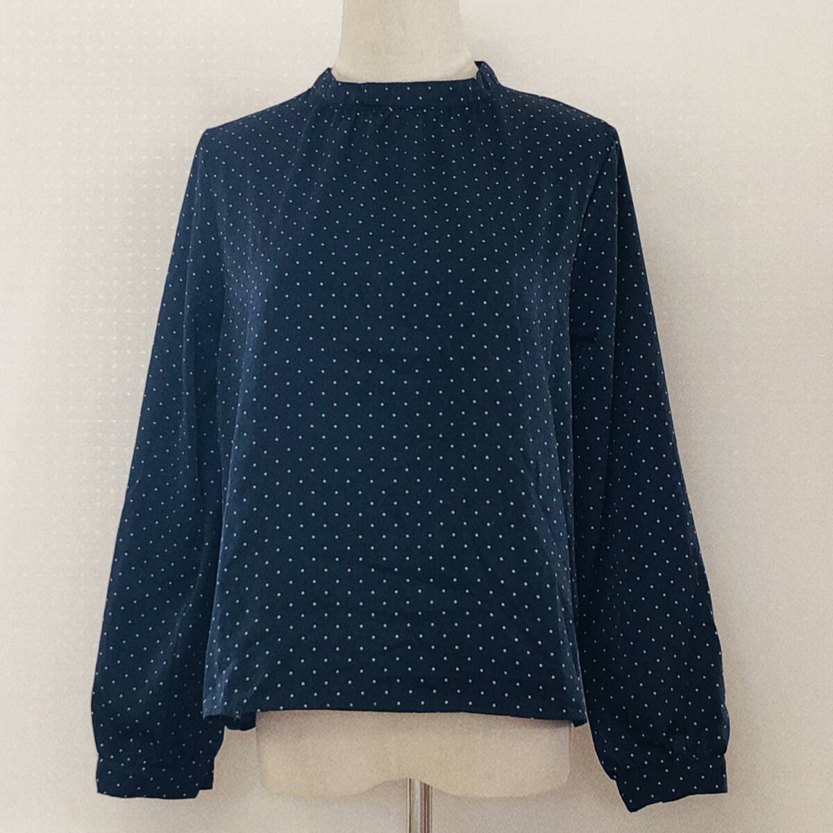 - Y2109 美品 GLACIER グラシア レディース トップス ブラウス 長袖 背中ボタン有 薄手 カンボジア製 ネイビー 紺 ドット 水玉 かわいい休日