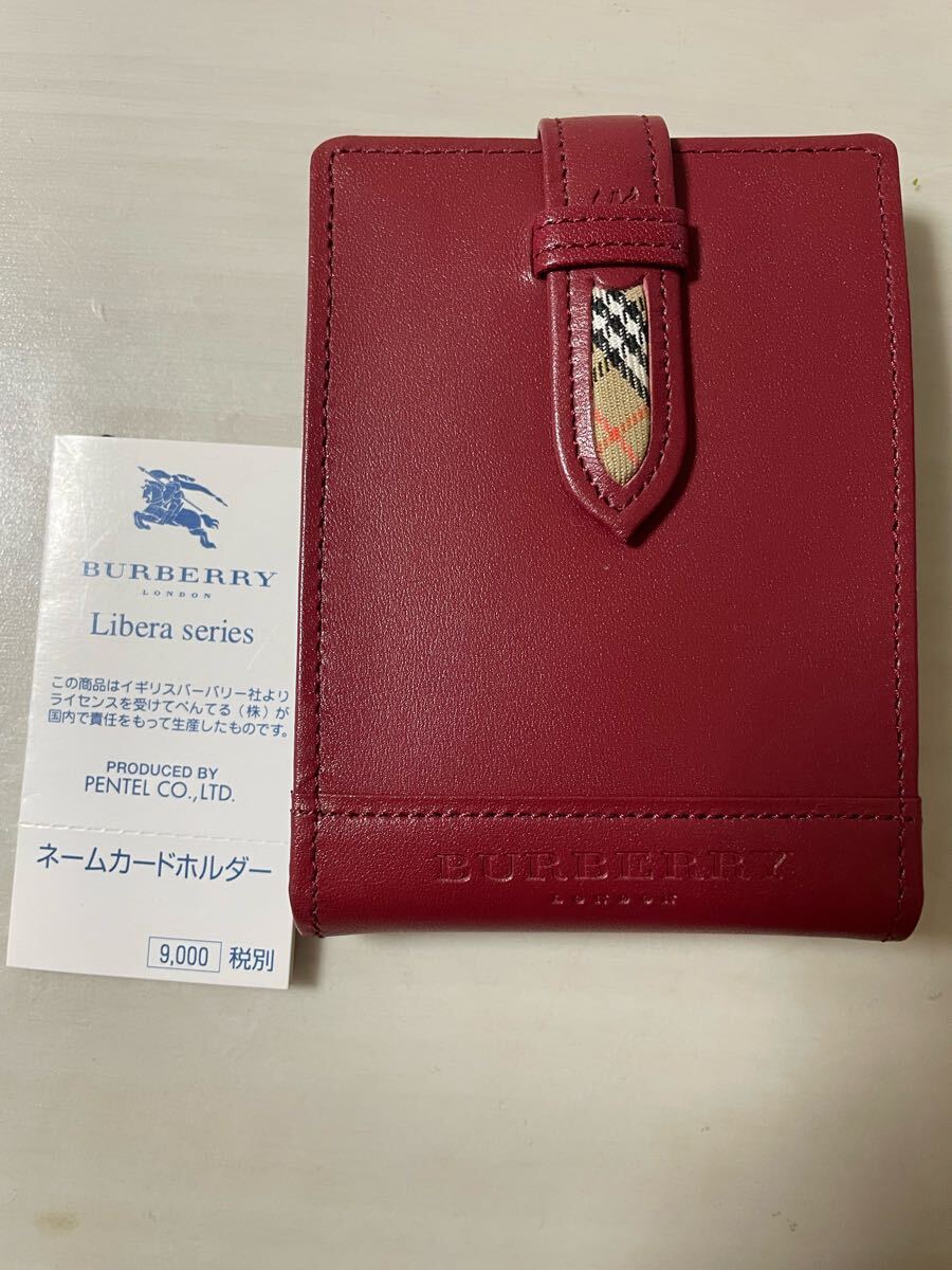 - BURBERRYバーバリー 本物 未使用品 タグ付き カードホルダー レッド×ノバチェック 名刺入れ 定期入れ 本革 ロゴ金具