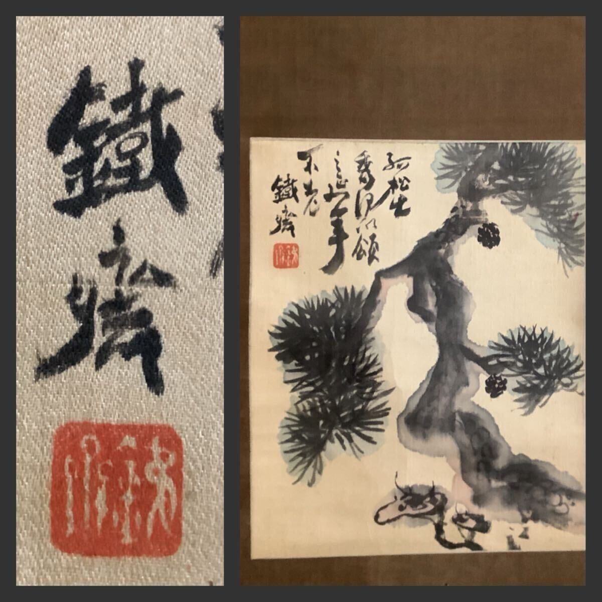 - 【模写】掛軸Aug749B[富岡鉄斎 松の図]絹本 書いたもの 木箱/日本画 花鳥画 明治大正期 文人画家 儒学者