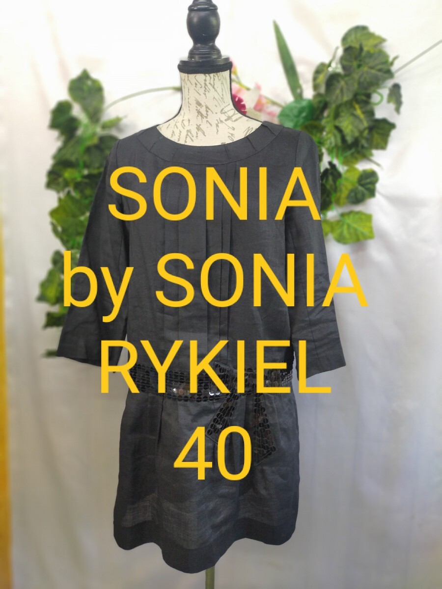 - 美品 ソニアバイソニアリキエル ワンピース 40 リネン スパンコール付 黒