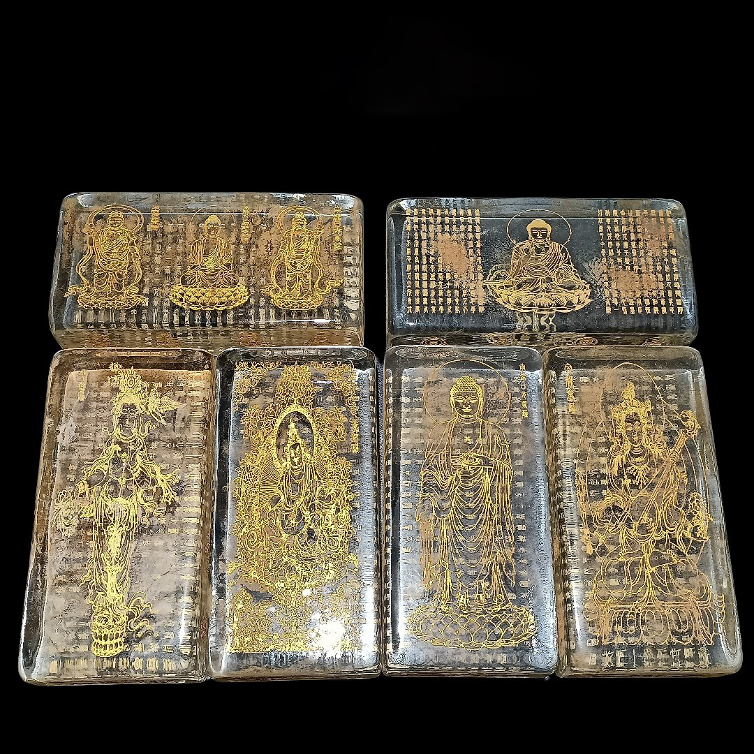 - TM8#7958【3.1】 人間国宝 中国骨董 仏教美術 仏像【秘蔵クリスタルタイル6枚です】 置物 工芸品 時代物 珍品旧蔵 伝世家珍