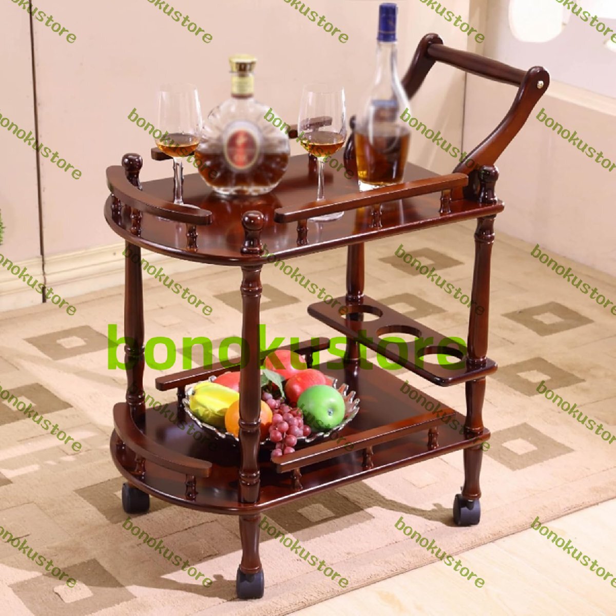 - サービスワゴン 車輪とハンドル付きの2段バー サービング カート ワイン ラック付きの家庭用ティー トロリー ブラウン