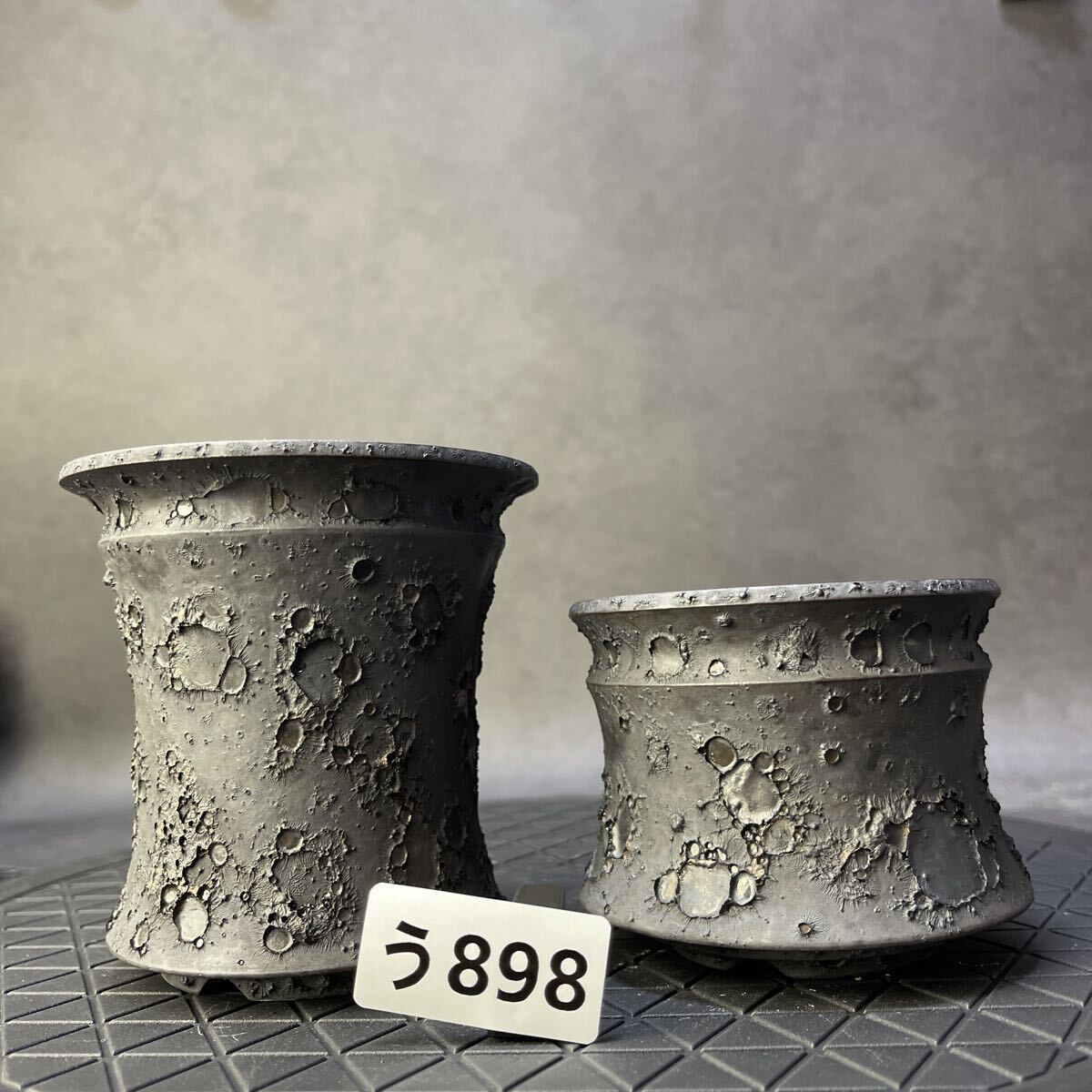 > う898 HAND Made 2点 月面泡釉 植木鉢 陶器 検(アガベ パキプス 姫巌竜 帝釈天 黒火焔 factory SRL カタチ製作所 グラキリス 塊根植物