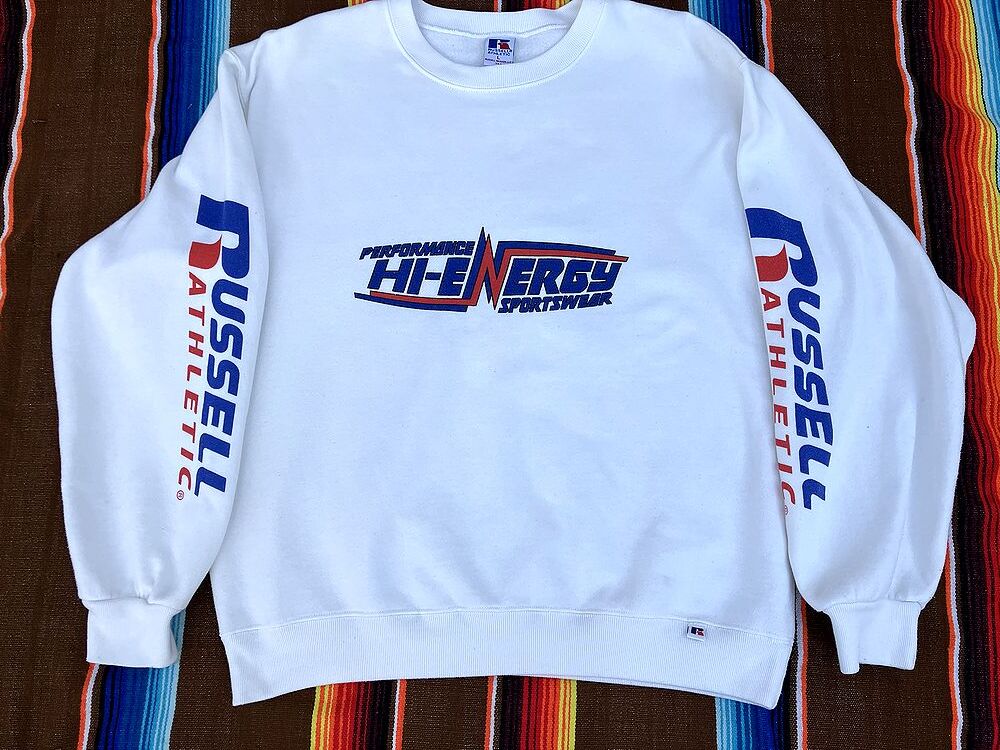 - ◇RUSSELL ラッセル 長袖 スウェット トレーナー Lサイズ 両面プリント 両袖プリント 染み込みプリント◇検索 アメカジ 古着