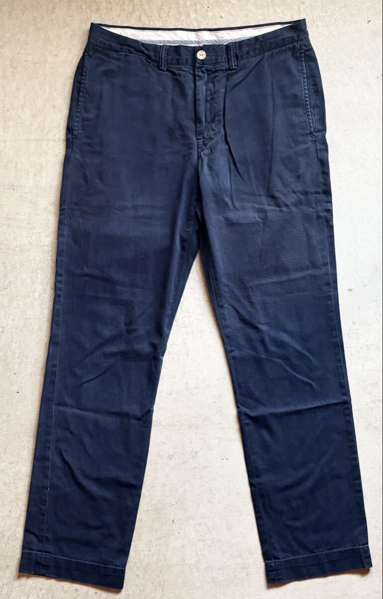 > 【POLO RALPH LAUREN】ポロラルフローレン コットン パンツ チノパン ノータック メンズ W32 紺/NAVY ストレート スラックス 古着 正規品