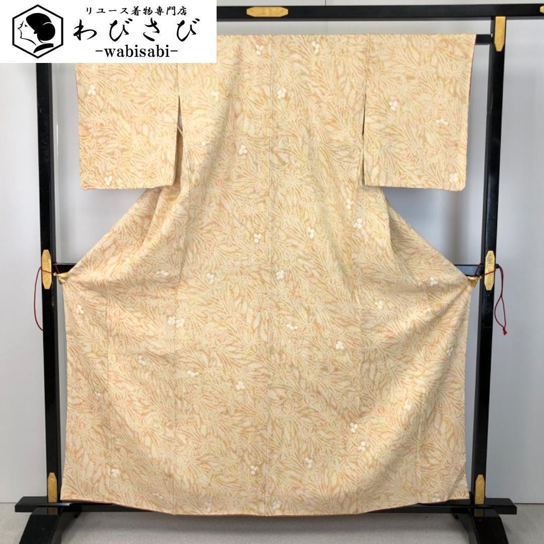 > 小紋 総絞り 菖蒲の花模様 薄梅谷渋色 K-5171 着物 きもの kimono 和服 和装 中古 リサイクル着物 【送料無料】